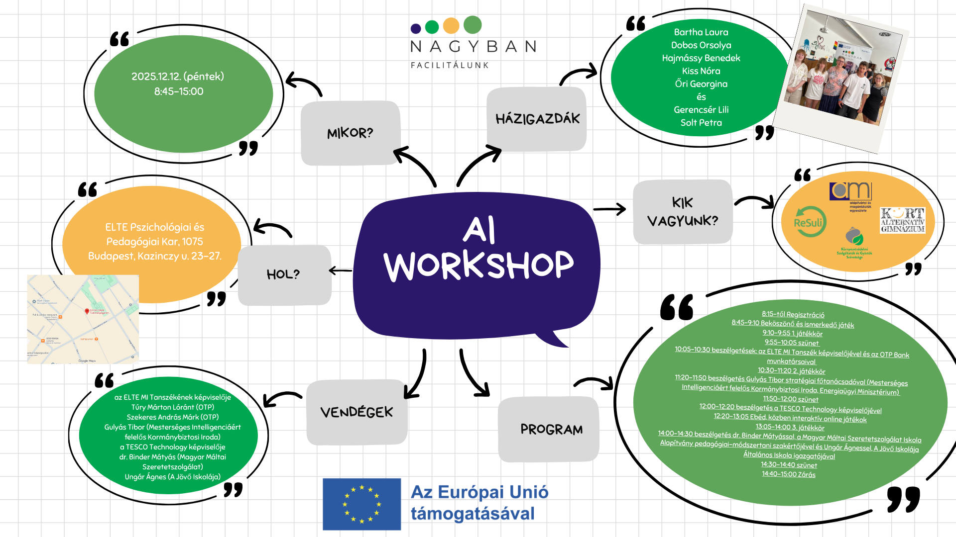 Szeretettel várunk 2025. december 12-én, pénteken az ELTE PPK épületében egy különleges, játékos napra, ahol fiatalok és felnőttek együtt gondolkodnak az AI-ról.